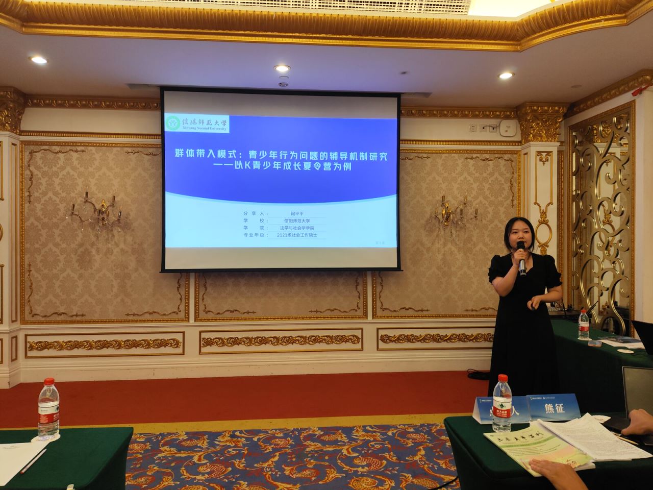 在7月28日下午举行的第五分论坛“社会工作参与基层社会治理的理论与实践研究”活动中,闫平平以“群体带入模式:青少年行为问题的辅导机制研究——以K青少年成长夏令营为例”为主题向大会作学术报告。