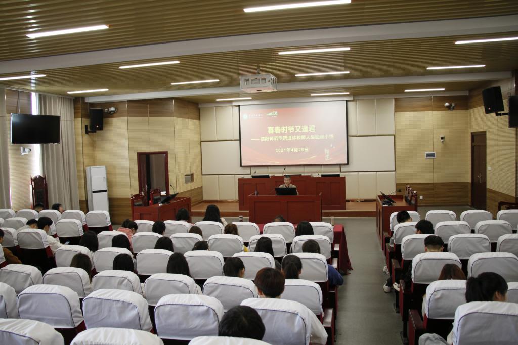 时间:2021-04-29 14:41 来源: 作者:祁中山 阅读: 次落红不是无情物,化作春泥更护花。4月28日,信阳师范学院社会工作服务站首场老年社会工作服务活动在社科楼道德讲堂举行,活动邀请了退休党员教师王忠阁教授、左永品教授讲述人生经历和感悟。法社学院副院长贾义保、副书记樊德玲以及19级社会工作本科班学生参加活动。